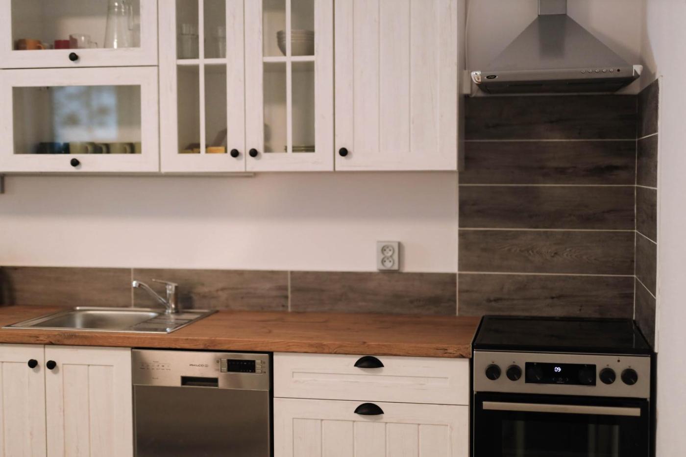 One-Bedroom Apartment. The well-fitted kitchenette features a stovetop, a refrigerator, a dishwasher and a toaster. The apartment has carpeted floors, a seating area with a flat-screen TV, a washing machine, a private entrance, as well as soundproof walls. The unit has 2 beds.